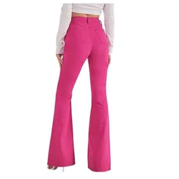 Show more Introducing the SweatyRocks Women's Casual Denim Pants, the ultimate blend of style and comfort! Crafted from a soft, stretchy fabric that hugs your curves in all the right places, these heart print high waist flared jeans are a show-stopper. Available in a vibrant hot pink, they promise to turn heads wherever you go. Designed with a button and zipper fly, along with practical side pockets, they combine functionality with a stunning Y2K aesthetic. Whether you're dressing them up for a party or keeping it casual for a day out, these jeans make it easy to flaunt your unique style.