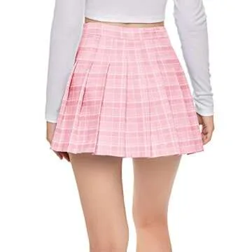 SweatyRocks Women's Casual High Waist Plaid A Line Pleated Mini Skirt Pink XS