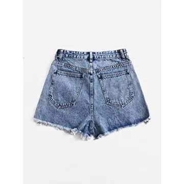 SweatyRocks Women's Casual High Waist Raw Hem Ripped Denim Jean Shorts with Pocket Classic Dark Blue M