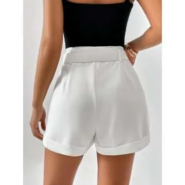 SweatyRocks Women's Casual High Waist Wide Leg Shorts Plicated Roll Hem Belted Shorts