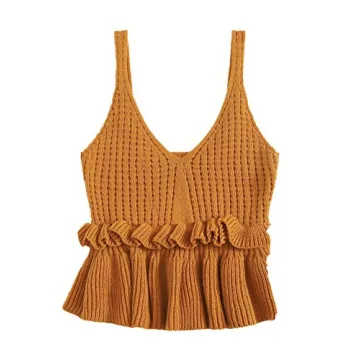 Show moreIntroducing the SweatyRocks Women's Casual Knit Top, a versatile sleeveless ruffle hem peplum crop tank top that marries comfort with fashion. This chic piece is designed with a flattering V-neckline and a playful ruffle hem, making it the perfect addition to your summer wardrobe. Crafted from a soft, breathable fabric, it ensures all-day comfort whether you're lounging at home, hitting the beach, or stepping out with friends. Its cropped length and unique design make it easy to pair with high-waisted jeans, skirts, or shorts, providing a stylish edge to any outfit. Elevate your casual style effortlessly with this must-have tank top!