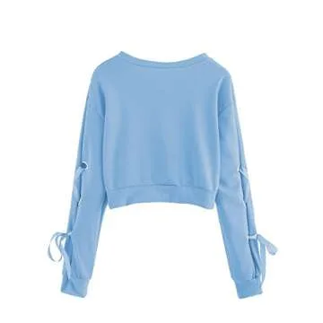 SweatyRocks Women's Casual Lace Up Long Sleeve Pullover Crop Top Sweatshirt Blue Medium