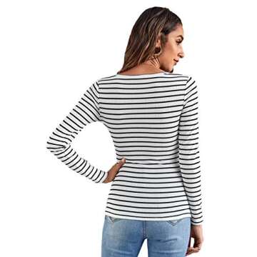 SweatyRocks Women's Casual Long Sleeve Ribbed Knit Button Henley Striped T Shirt