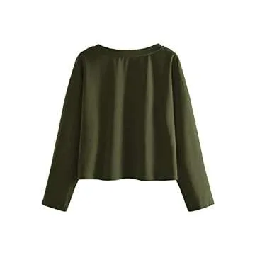 SweatyRocks Women's Casual Long Sleeve Tops Raw Cut Pullover Sweatshirt Olive Green M