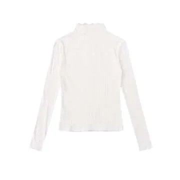 SweatyRocks Women's Casual Mock Neck Long Sleeve Ribbed Knit Slim Fit T Shirts White M