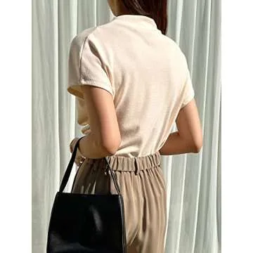 SweatyRocks Women's Casual Short Sleeve Mock Neck Tee Top Asymmetric Ruched Plain T Shirt Beige L