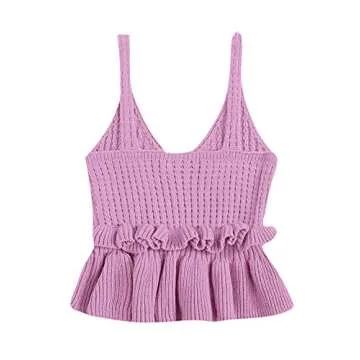 Show moreElevate your casual wardrobe with the fabulous SweatyRocks Women's Casual Spaghetti Strap Ruffle Hem Peplum Cropped Knit Sweater in a stunning solid purple. This sweater is meticulously crafted for comfort and style, featuring a trendy spaghetti strap design perfect for layering during warmer days or pairing with your favorite jacket in cooler weather. The unique ruffle hem adds a playful touch that flatters your silhouette, while the peplum style offers a chic twist to traditional cropped styles. Made from a soft, breathable knit fabric, this piece ensures you stay comfortable whether you're out for brunch with friends or enjoying a cozy night in.