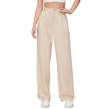 Show moreIntroducing the SweatyRocks Women's Casual Wide Leg High Waisted Button Down Straight Long Trousers Pants in a soothing beige hue, designed specifically for the modern woman who embraces style and comfort effortlessly. Crafted from a luxurious blend of 95% polyester and 5% elastane, these trousers promise an unparalleled softness against the skin while maintaining breathability—perfect for any occasion. With a unique zip-up feature complemented by chic button detailing, these high-waisted pants offer a fashionable twist on classic casual wear. Their bootcut and wide-leg design delivers a flattering silhouette that gracefully transitions from daily home wear to vibrant nights out.