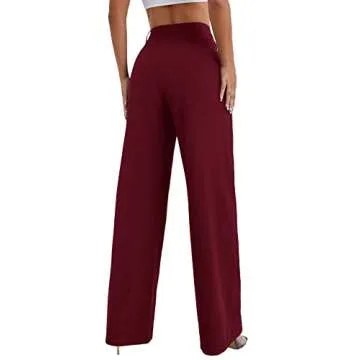 Show moreIntroducing the SweatyRocks Women's Casual Wide Leg High Waisted Button Down Straight Long Trousers Pants in a stunning burgundy hue that is perfect for any fashion-forward wardrobe. Crafted from a blend of 95% Polyester and 5% Elastane, these pants provide a soft and breathable experience that feels luxurious against your skin. The high-waisted design unveils a chic silhouette that flatters your body shape, while the bootcut and wide-leg style adds a touch of elegance, making these trousers versatile for multiple occasions.