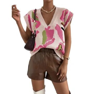 Show more Introducing the SweatyRocks Women's Colorblock Graphic Cap Sleeve V Neck Sweater Vest, your go-to choice for a trendy yet cozy fall look! This stunning pullover sweater top in vibrant pink is crafted from breathable and soft fabric that hugs your skin just right, ensuring you stay comfortable all day long. With a medium stretch and a flattering v-neck design, this sweater vest is not only stylish but also functional, making it perfect for any casual occasion. Whether paired with your favorite jeans, trousers, or cute shorts, this versatile piece will elevate your wardrobe while adding a pop of color to your ensemble.