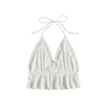 Show moreIntroducing the SweatyRocks Women's Deep V Neck Halter Crop Cami Top, a stunning sleeveless vest that combines comfort and style effortlessly. Crafted from 100% lightweight polyester, this top is designed to keep you cool and chic, making it an essential addition to your wardrobe. The delicate lace trim adds a touch of flirtiness, while the open back and self-tie design provide a customizable fit that's perfect for all-day wear. This off-white halter cami pairs beautifully with shorts, jeans, or skirts, making it a versatile piece for any occasion.