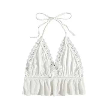 SweatyRocks Women's Deep V Neck Halter Crop Cami Top Sleeveless Vest Off White Medium