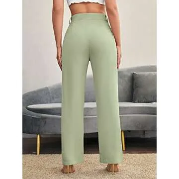 Introducing the SweatyRocks Women's Elegant High Waist Solid Long Pants in a refreshing mint green hue. Crafted from a premium blend of polyester, these trousers are designed to offer both comfort and style. Their solid color pairs seamlessly with a range of tops—from blouses and tank tops to crop tops and sweaters—making them a versatile addition to your wardrobe. The tailored fit and high waist silhouette not only flatter your figure but also provide the chic, office-ready elegance...