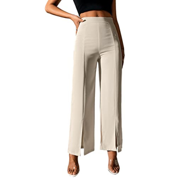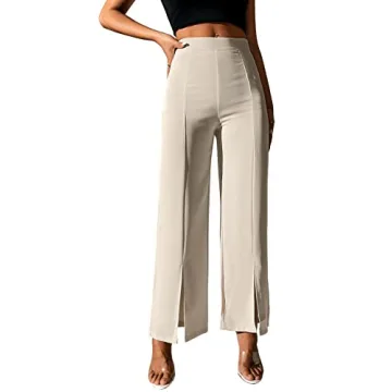 Show more Introducing the epitome of style and elegance, these beautiful elegant pants are designed to elevate your wardrobe effortlessly. Crafted from breathable and comfortable fabric, these trousers are perfect for any occasion. Featuring a high rise, straight leg, and slit hem, they offer a chic silhouette that flatters all body types. The solid color allows for endless pairing possibilities with various tops - think tee shirts, blouses, crop tops, and cami tank tops, making them incredibly versatile.