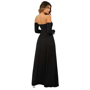 Off shoulder, high split thigh, high waisted, A line maxi dress, elegant style