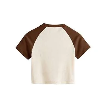 Feature:Cute mushroom graphic crop tops, color block, knit tops, short sleeve,fairy grunge clothes, ruched bust