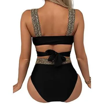 Show moreGet ready to turn heads this summer with the SweatyRocks Women's High Waisted Bikini Set! Designed for the fashion-forward individual, this two-piece bathing suit combines a stunning aesthetic with unmatched comfort. Crafted from a premium blend of polyamide and spandex, this bikini offers a soft touch against your skin while ensuring a perfect fit for all-day wear. Its lightweight and stretchy fabric allows for effortless movement, making it ideal for both sunbathing and swimming.