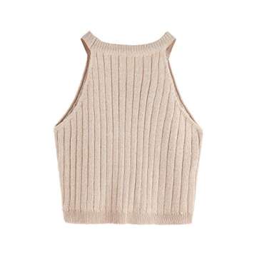 SweatyRocks Women's Stylish Knit Halter Neck Ribbed Tank Top