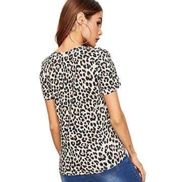 SweatyRocks Women's Leopard Print Short Sleeve Round Neck Casual T Shirt Tops (Medium, Multicolor #3)