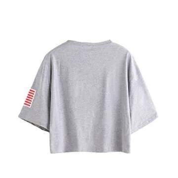 Show moreIntroducing the SweatyRocks Women's Letter Print Crop Tops, a trendy and comfortable essential for your summer wardrobe. This stylish short sleeve T-shirt features a unique USA Flag Print that celebrates your love for the stars and stripes, making it a perfect choice for casual outings, holidays, or a day at the park. Crafted from a blend of 90% cotton, this tee offers extraordinary softness and breathability, ensuring you stay cool and comfortable throughout those hot summer days. Available in an array of colors with a relaxed fit, this crop top is perfect for pairing with your favorite high-waisted jeans or shorts.