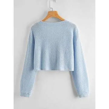 SweatyRocks Women's Long Sleeve Button Front V Neck Soft Knit Cardigan Sweaters Pale Blue S