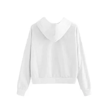 SweatyRocks Women's Long Sleeve Full Zip Drawstring Hooded Sweatshirt Jacket with Pockets White M