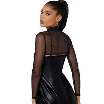 SweatyRocks Women's Long Sleeve Mock Neck Slim Fit Sheer Mesh Crop Shirt Top Black M
