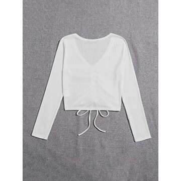 SweatyRocks Women's Long Sleeve V Neck Crop Top Drawstring Ruched Tee Shirt