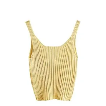 SweatyRocks Women's Ribbed Knit Crop Tank Top Spaghetti Strap Camisole Vest Tops Yellow L