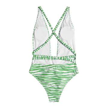 Get ready to make a splash this summer with the SweatyRocks Women's Sexy Bathing Suits. This stunning leopard one-piece swimwear boasts a sexy criss-cross tie-knot front design, ensuring you look chic and stylish while soaking up the sun. The deep V neckline accentuates your silhouette, while the open back adds a daring touch. Available in a vibrant white and green combination, this suit is perfect for beach outings or poolside lounging.