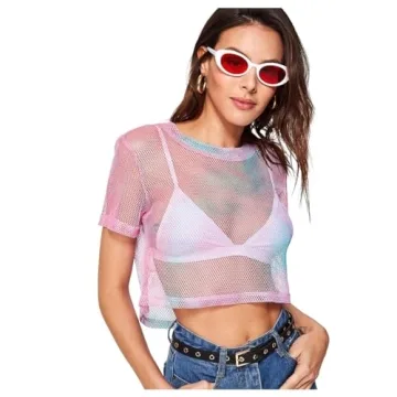Show moreIntroducing the SweatyRocks Women’s Sexy Sheer Mesh Fishnet Net Short Sleeve T-Shirt Crop Top, a trendy addition to your summer wardrobe that seamlessly blends style and comfort. Crafted from high-quality polyester, this form-fitting crop top is designed with a fashionable mesh fabric that’s both soft and breathable, making it perfect for warm weather outings or intense workout sessions. Whether you prefer the eye-catching tie-dye pattern or the chic basic solid and geometric prints, this versatile top is sure to make you stand out.