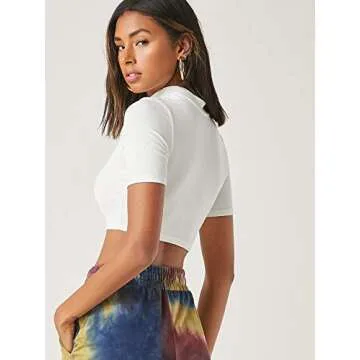 Show moreElevate your style with the SweatyRocks Women's Short Sleeve Crop Top Ribbed Knit Mock Neck T-Shirt. This chic ribbed knit top showcases a modern mock neck design that compliments any outfit, making it a must-have addition to your wardrobe. Crafted from high-quality materials, this crop top is not only soft and comfortable but also breathable, ensuring you feel refreshed all day long. The sleek white color enhances its versatility, allowing it to pair effortlessly with jeans, skirts, or shorts for a trendy look.