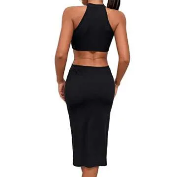 Why You will Love This Product?This dress is more than just clothing; it’s a statement of confidence and style. By slipping into the SweatyRocks Women's Sleeveless Cut Out Split Thigh Halter Bodycon Midi Dress, you embrace your inner fashionista. The combination of a flattering silhouette and unique design delivers an exhilarating experience that uplifts your mood and self-expression. Make every outing unforgettable and feel empowered in a piece that was crafted with your style in mind.