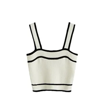 SweatyRocks Women's Sleeveless Ribbed Knit Spaghetti Strap Crop Cami Tank Top Solid White Black S