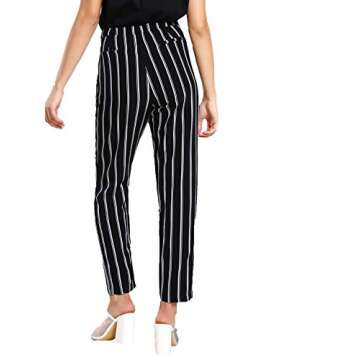 SweatyRocks Women's Striped Elastic High Waist Slim Fit Loose Casual Long Pants Black White S