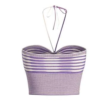 SweatyRocks Women's Striped Tie Backless Halter Top Sleeveless Knitted Crop Cami Tank Purple S