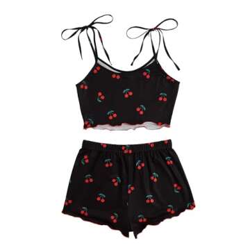 SweatyRocks Women's Summer Strawberry Print Cami Top and Shorts Sleepwear Pajamas Set