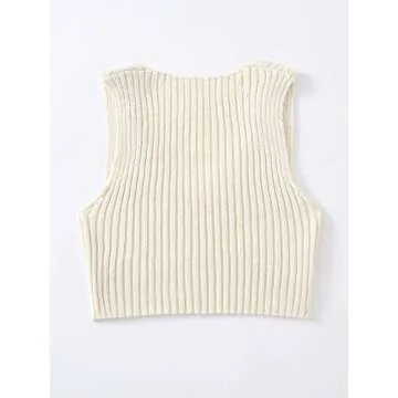 SweatyRocks Women's V-Neck Ribbed-Knit Sleeveless Crop Vest Tank Cami Top Beige M