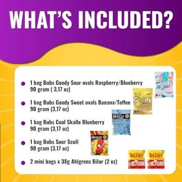 Show moreUnveil the unique allure of Sweden with our Swedish Candy Mix - a delightful assortment of confections that promise to tickle your taste buds. This carefully curated mix includes 4 bags of Bubs Candy (90 grams each) and 2 bags of Ahlgrens bilar (30 grams each), combining quality and tradition in every sweet morsel. The perfect balance of flavors and textures, these candies range from chewy gummies to delightful sour treats, making them an unforgettable experience for candy lovers. Imported directly from Sweden, they feature playful packaging that echoes the joy and whimsy of candy enjoyment, ensuring that your candy stash is as fun to look at as it is to eat.