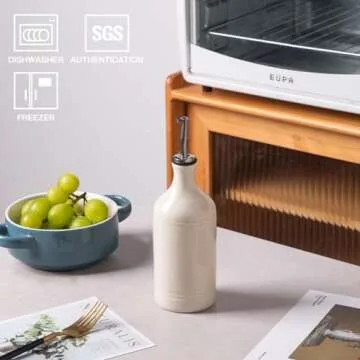 Sweejar Ceramic Olive Oil Dispenser Bottle, Opaque Oil Cruet Protects Oil to Reduce Oxidation, Suitable for Storage Oil, Vinegar, Coffee Syrups & Other Liquids, Pack of 1, 15.5 Fl Oz (Beige)