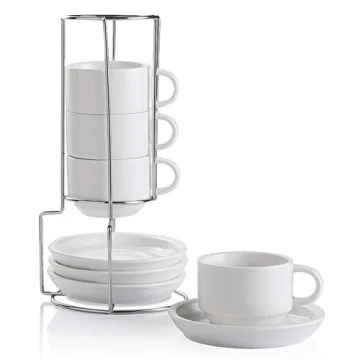 Sweejar Elegant Stackable Espresso Cups Set with Saucers