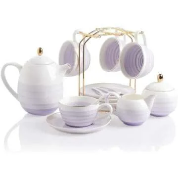 Compared to other tea sets in the market, the Sweejar Porcelain Tea Set offers a more comprehensive package with its additional components like the included spoons and a stainless steel infuser, which are often sold separately elsewhere. The superior ceramic quality and aesthetic design provide greater value, ensuring both durability and style.