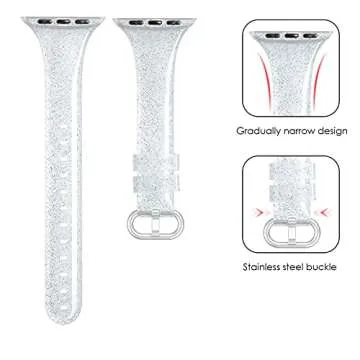 SWEES Compatible with Apple Watch Bands 42mm (Series 10) 41mm 38mm 40mm, Shiny Glitter Silicone Soft Slim Small Sport Replacement Strap Compatible for iWatch Series 10 9 8 7 6 5 4 3 2 1 SE Women