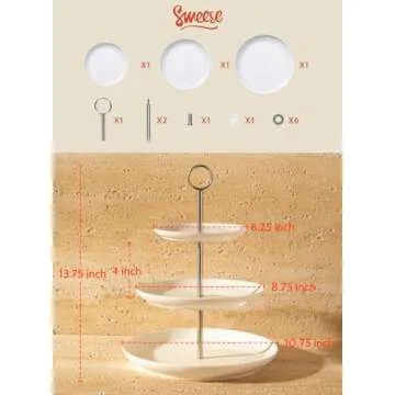 Sweese 3 Tier Cupcake Stand- White Porcelain Cake Stand- Dessert Stand, Tiered Serving Trays for Parties
