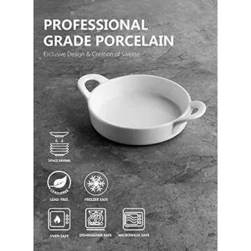 Sweese 507.001 Porcelain Ramekins, 5 Ounce Ramekins for Baking, Round Creme Brulee Dish with Double Handle-Set of 6 - White