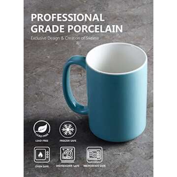 Sweese 608.002 Porcelain Mugs Set, 15 Ounce Large Handle Mugs, Set of 6, Multicolor, Hot Assorted colors