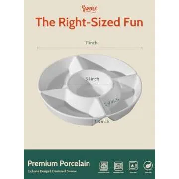 Show moreIntroducing the **Sweese Chip & Dip Serving Set**, a pristine, multi-functional porcelain serving platter that promises to elevate your entertaining experience. Crafted from premium pro-grade porcelain, this elegant serving dish seamlessly marries style and practicality. With an optimal diameter of 11 inches, it is equipped with **five carefully divided compartments**, making it the perfect choice for showcasing a colorful array of snacks. From hearty chips and zesty dip to fresh fruits, savory vegetables, and sweet candies, your culinary creations will be beautifully displayed, ready to delight every guest at your gathering.