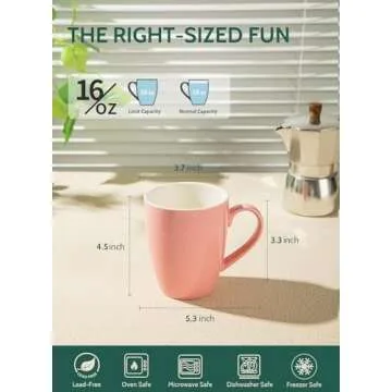 Comfort and ease are at the heart of our coffee mugs, featuring a spacious design complemented by a large handle for a cozy grip. Whether you're savoring a hot latte or enjoying your favorite tea, these ergonomic mugs sit snugly in your hands, allowing you to relish each sip. The wide mouth and substantial capacity of 16 ounces make them ideal for indulging in generous servings of your favorite beverages.