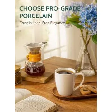 Show moreIntroducing the Sweese Porcelain Mugs - the perfect blend of functionality and aesthetic appeal. Designed specifically for coffee, tea, mocha, and mulled drinks, each mug boasts a 12-ounce capacity, making it ideal for enjoying your morning brew just the way you like. Crafted from commercial-grade Pro-Grade Porcelain, this set of six mugs not only harmonizes beauty and quality, but also guarantees a lead-free solution for your hot beverages, ensuring safety with every sip.