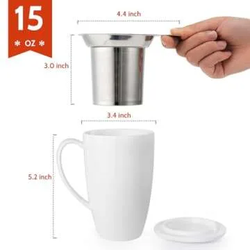 Show more Discover the ultimate tea experience with the Sweese Tea Cup with Infuser and Lid. This elegantly designed tea set seamlessly marries functionality and aesthetics, making each tea moment feel special, whether you are a seasoned tea connoisseur or someone who enjoys a soothing cup of herbal infusion. Crafted from premium porcelain, this 15oz cup is microwave-safe and features a stunning lead-free natural glaze that ensures both safety and longevity, complementing any kitchen or dining table effortlessly.
